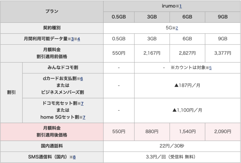 irumoとは2023/7/1より開始したのドコモの新プランです