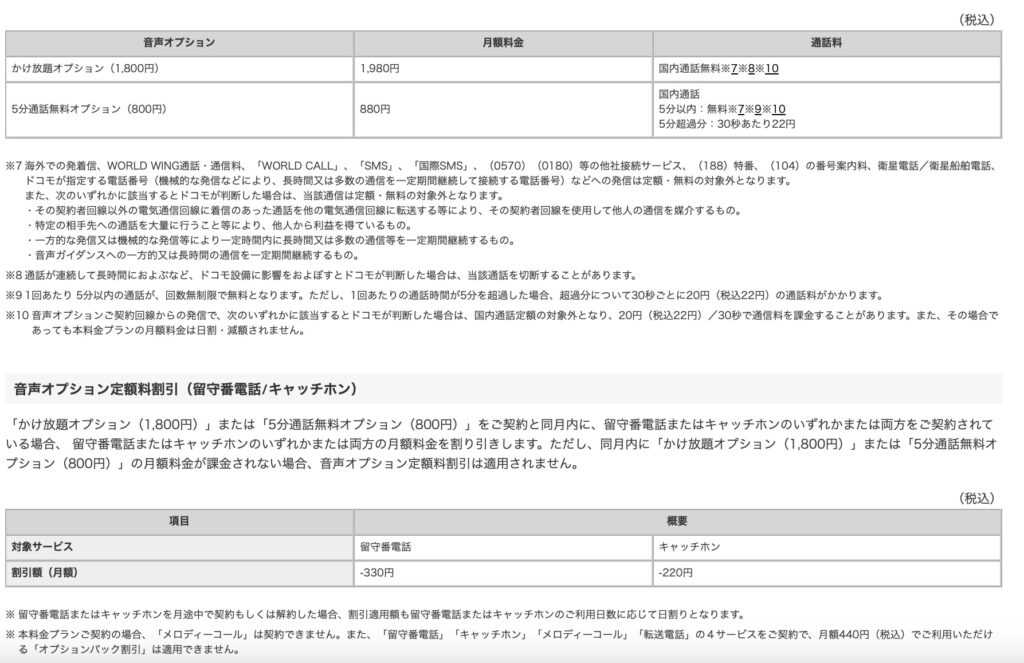 さらに、この通話オプションをつける場合、留守番電話330円とキャッチホン220円が無料でオプションとして追加することが可能になっています。